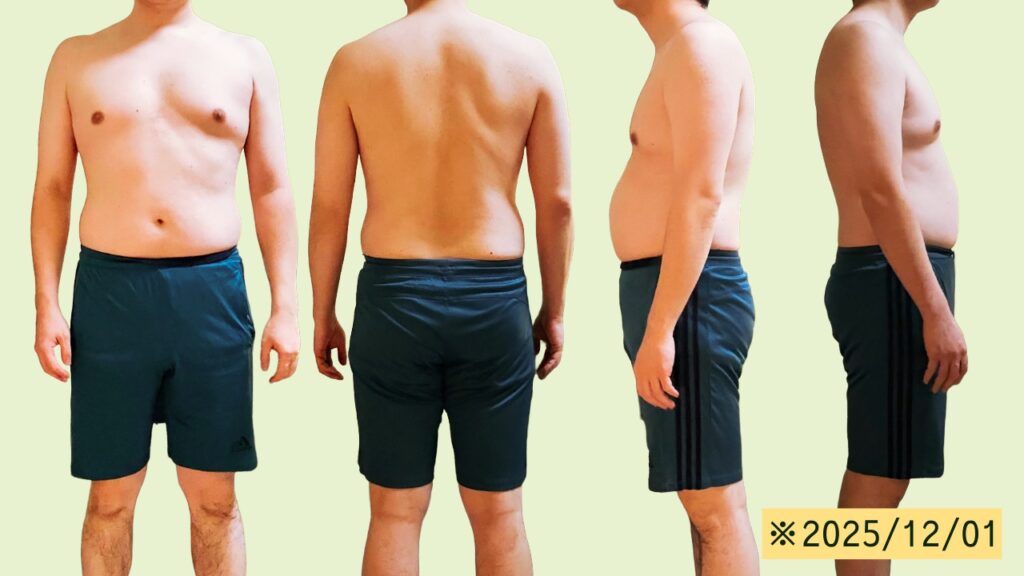 まずは、逃げも隠れもできない「現在の私(スタート地点)」の数値を記録することから始めます。 数字を見て、改めて気が引き締まりました(悪い意味で)。